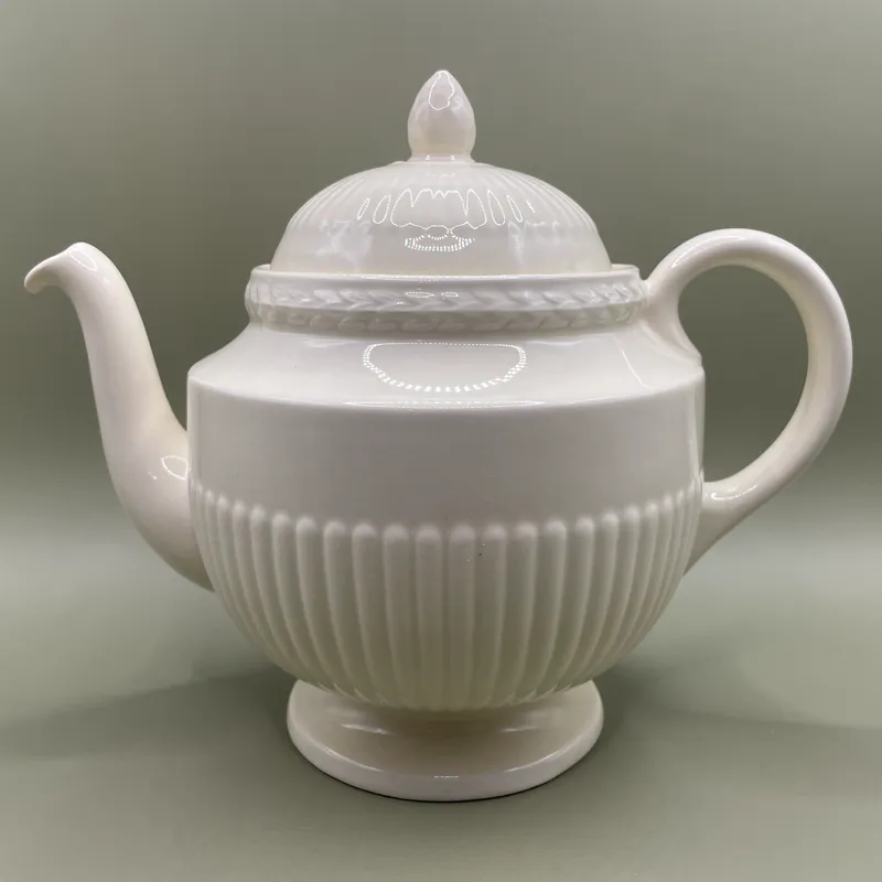 De Wedgwood Edme theepot is een toonbeeld van tijdloze elegantie en Britse traditie. Dit iconische ontwerp van het gerenommeerde merk Wedgwood staat al generaties lang bekend om zijn verfijnde uitstraling, duurzame kwaliteit en subtiele klassieke details. Met zijn zachte crèmekleur en kenmerkende reliëfrand brengt de Edme theepot direct warmte en stijl op tafel.